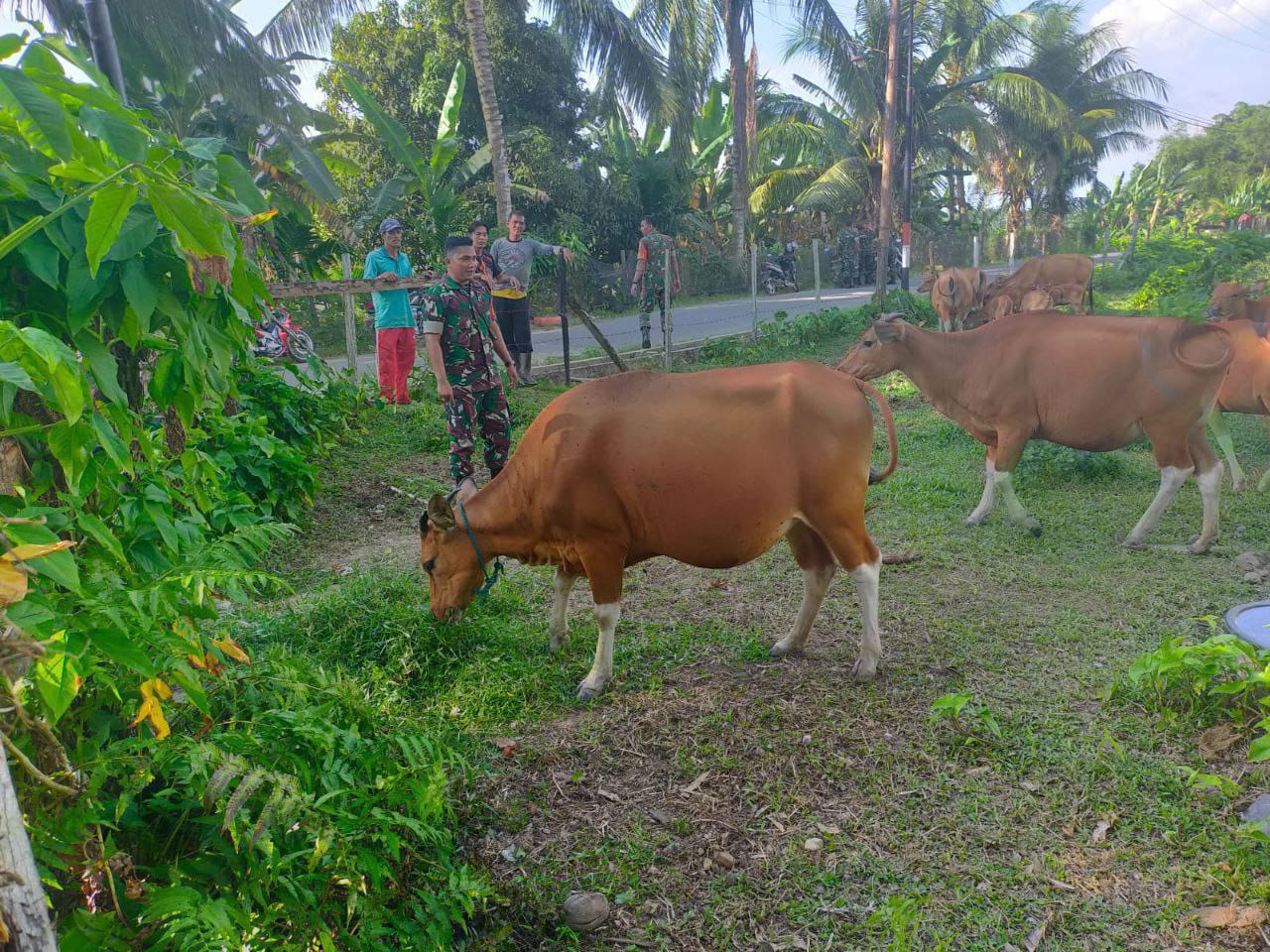 Babinsa Serda Herri Farwady juga mengingatkan kepada para peternak untuk rutin memeriksa hewan ternak, seperti sapi, kerbau dan jika ada gejala atau indikasi terjangkit PMK segera melapor kepada instansi terkait atau aparat terdekat. “Pungkasnya.