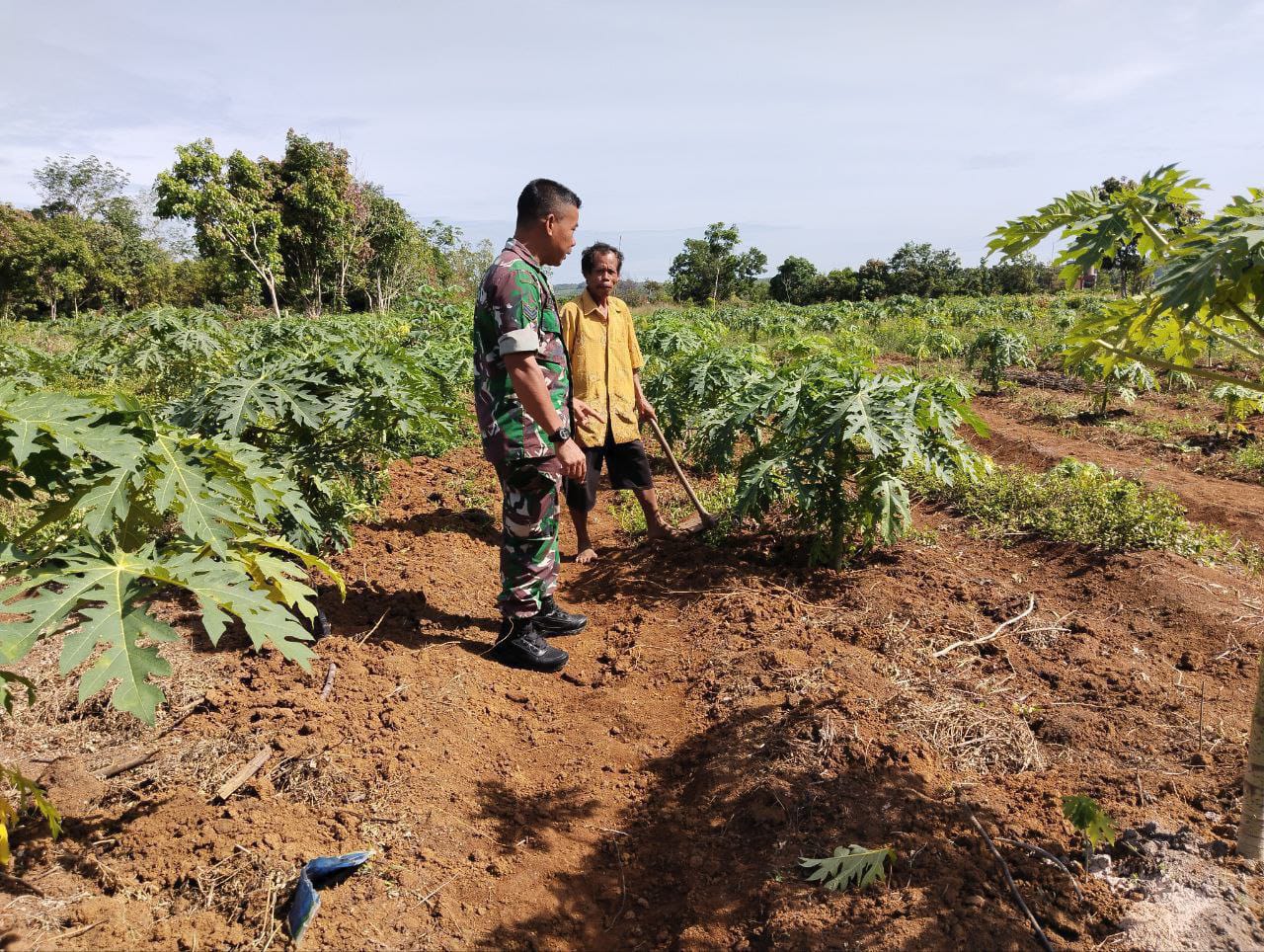 Wujud Hanpangan, Babinsa Koramil 02/KT Dampingi Petani Pepaya Diwilayah Binaan