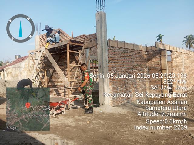 Asahan  |  Seperti pepatah mengatakan, berat sama dipikul, ringan sama dijinjing, pepatah itulah menjadi motivasi kami bersama warga di wilayah binaan untuk terus menjalin kebersamaan saling membantu serta bergotong-royong agar pekerjaan terasa ringan, dalam kesempatan ini seperti yang dilakukan oleh Personel Bintara Pembina Desa (Babinsa) Koramil 10/Sei Kepayang jajaran Kodim 0208/Asahan Sertu Yuspa K turun kewilayah desa binaan untuk membantu Warga masyarakat binaan untuk membangun rumah dalam rangka meningkatkan hubungan Silaturrahim antara Babinsa dengan warga Masyarakat binaan, kegiatan gotong royong membantu membantu masyarakat.yang berada di daerah desa binaan, kegiatan bertujuan untuk lebih meningkatkan hubungan baik antara Babinsa dan mitra karib serta terjalin hubungan yang baik dan harmonis antara masyarakat desa binaan dengan Babinsa sehingga tugas dan kegiatan Babinsa dapat tercapai dengan baik di wilayah Koramil 10/SK, bersama dengan Bapak Rahmat, Bapak Irwan, Bapak Amri dan Bapak Rasidi, kegiatan tersebut yang dilaksanakan bertempat di Dusun 5 Desa Sei Jawi-jawi Kecamatan Sei Kepayang Barat Kabupaten Asahan, Senin (05/01/2026).
