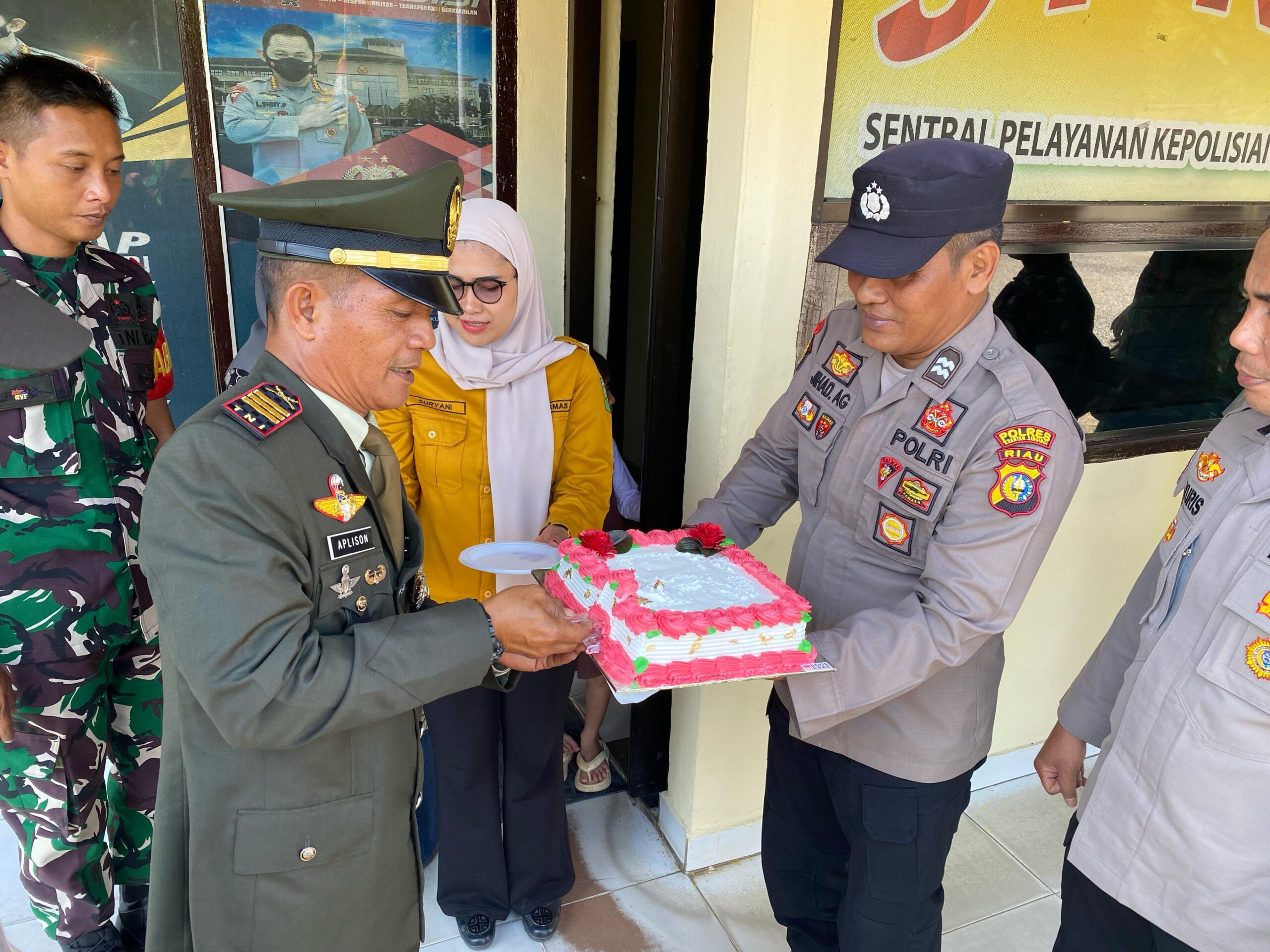 Terbukti dalam puncak hari Bhayangkara ke-79 Tahun 2025,Danramil 08/KM Kapten Inf Aplison memberikan kejutan dengan memberi ucapan dan memberikan kue ulang tahun hut bhayangkara polri ke 79 bertempat di mapolsek kuantan mudik jalan Jendral Sudirman Kecamatan kuantan mudik kabupaten kuantan singingi.