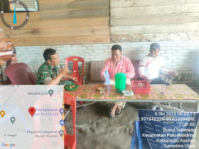 Asahan | Dalam rangka untuk memelihara dan menjalin hubungan baik dengan masyarakat, untuk meningkatkan sinergitas antara TNI dan masrakat, keakraban kepada warga binaan merupakan tugas pokok Babinsa. Salah satunya yaitu dengan melakukan komunikasi sosial dalam menciptakan interaksi serta kekompakan antara Babinsa dan warga binaannya, inilah yang dilakukan oleh para Babinsa diwilayah binaan, dalam kesempatan ini seperti yang dilakukan oleh Personel Bintara Pembina Desa (Babinsa) Koramil 18/Meranti jajaran Kodim 0208/Asahan Serda Saleh Pohan turun kewilayah binaan untuk melaksanakan kegiatan Komunikasi Sosial (Komsos) bersama dengan warga masyarakat Desa binaan, Komsos dengan warga masyarakat adapun maksud tujuan membahas tentang perkembangan keamanan dan permasalahan yang ada di wilayah binaan, mengingatkan kembali kepada warga binaan apa bila ada hal2 yang menonjol supaya cepat lapor, bersama dengan Bapak Robi (Warga dusun l) dan Bapak Iwan (Warga dusun l), kegiatan tersebut yang dilaksanakan bertempat di Dusun l Desa Bunut Seberang Kecamatan Pulo Bandring Kabupaten Asahan, Senin (06/10/2025).